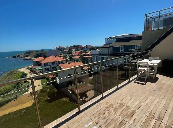 Apartamenti Genesis Achtopol, gelegen in Ahtopol, bevindt zich op 90 km afstand van de luchthaven Burgas. Dit appartement biedt een terras met uitzicht op de zee.
